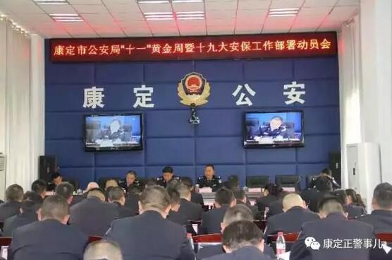 年初,康定市公安局明确要求各部门要把党的十九大安保工作置于工作首位,及早部署、精心组织,分阶段、分步骤推动各项安保措施落实到位。配套实施了一系列加强维护社会政治稳定和提高社会治安打防管控能力的有效措施。在9月15日,康定市公安局召开十一黄金周暨迎十九大动员部署大会,部署具体安保工作措施,动员全体民警认真履行职责,保持高昂斗志,迅速进入决战状态,坚决打赢十九大安保攻坚战。