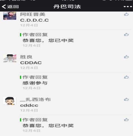 竞赛采取微信公众号推送文章的方式,每天推送5题,内容包括宪法、刑法、民法、中国特色社会主义法治理论等内容。竞赛开展以来,广大干部群众踊跃参加,500余人次网友通过留言方式答题。竞赛结束后,丹巴县司法局从答题满分的网友中,抽取优胜奖25名,每人送出了50元手机话费。